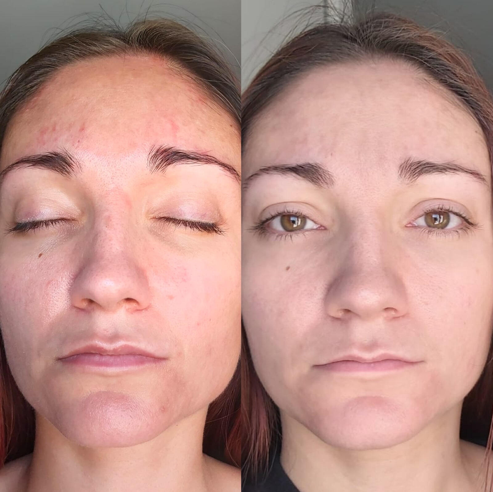 rosacée et dermatite atopique.résultat incroyable depuis le premier mois.avant, j’avais la peau en crise pour une raison inconnue et même si j’essayais des choses, même dans les cliniques, je ne savais pas quoi essayer.cela a amélioré ma peau en général et les boutons de rosacée et d’acné que j’avais.j'ai les pores minimisé, la peau éclairée, hydratée, je n’ai plus d'imperfection, je suis ravie.