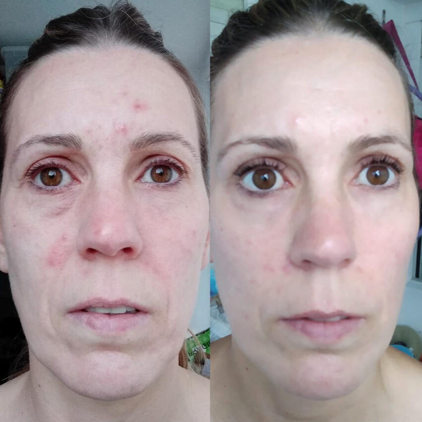 rosacée et dermatite atopique.résultat incroyable depuis le premier mois.avant, j’avais la peau en crise pour une raison inconnue et même si j’essayais des choses, même dans les cliniques, je ne savais pas quoi essayer.cela a amélioré ma peau en général et les boutons de rosacée et d’acné que j’avais.j'ai les pores minimisé, la peau éclairée, hydratée, je n’ai plus d'imperfection, je suis ravie.